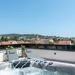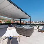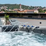 The 60 m² Penthouse Luka Apartment Trogir is located only 0.9 km from Tower Kamerlengo Trogir and about a 25-minute walk from Marina Baotic. In this 1-bedroom apartment, set not far from St Sebastian's Church, guests will find a hot tub.