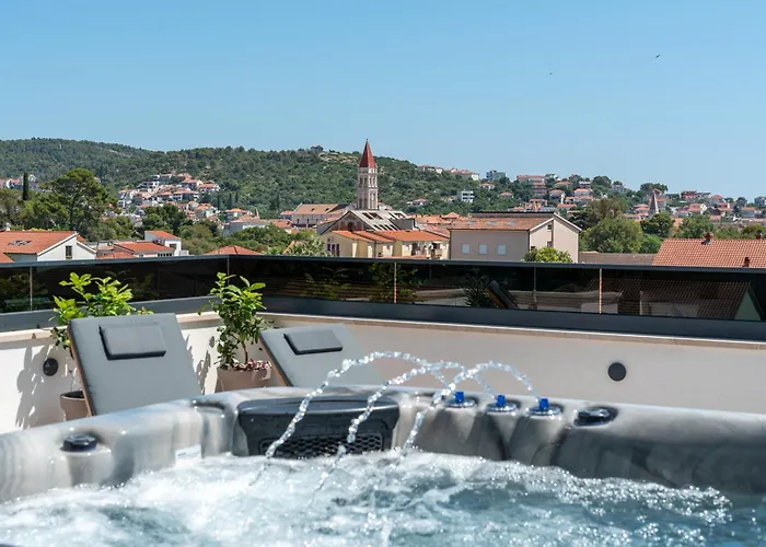 - ❓What popular landmarks are located close to Penthouse Luka apartment?Guests can consider visiting Historic City of Trogir, located 0.8 km away from Penthouse Luka apartment. Other sights include Copacabana Beach Okrug Gornji (2.4 km) and Tower Kamerlengo Trogir (0.9 km).